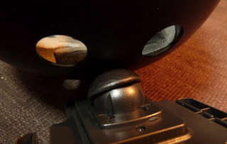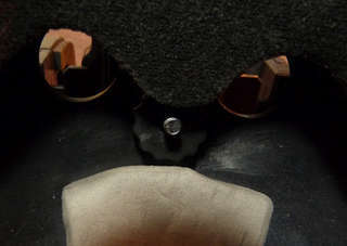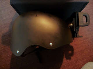 2.ヘルメットのおでこに来るあたりに1.の雲台ネジが刺さる大きさの穴をあける。